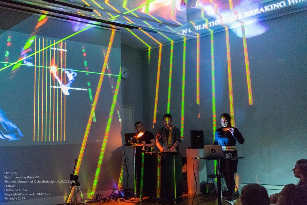 Esta performance se realizó 12 veces con una duración aproximada de 10 minutos, siempre en acciones diferentes y sonido co-creado en el aquí-ahora , presentada en el Fine Arts Museum of Oulu en el contexto del Festival LUMO International Light Festival en 2019.