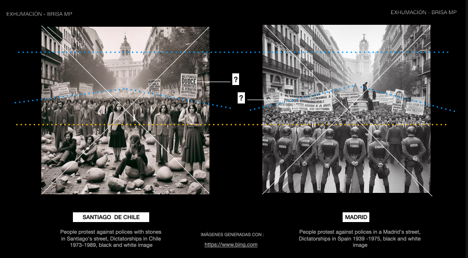 EXHUMACIÓ- Exumación – es un proyecto de investigación y creación entorno a las imágenes de archivo y las que pueden producir las Inteligencias Artificiales Generativas entorno a las Dictaduras Militares en España (1936-1975) y Chile (1973-1990), centrada en imágenes de mujeres y auto-biograficas.